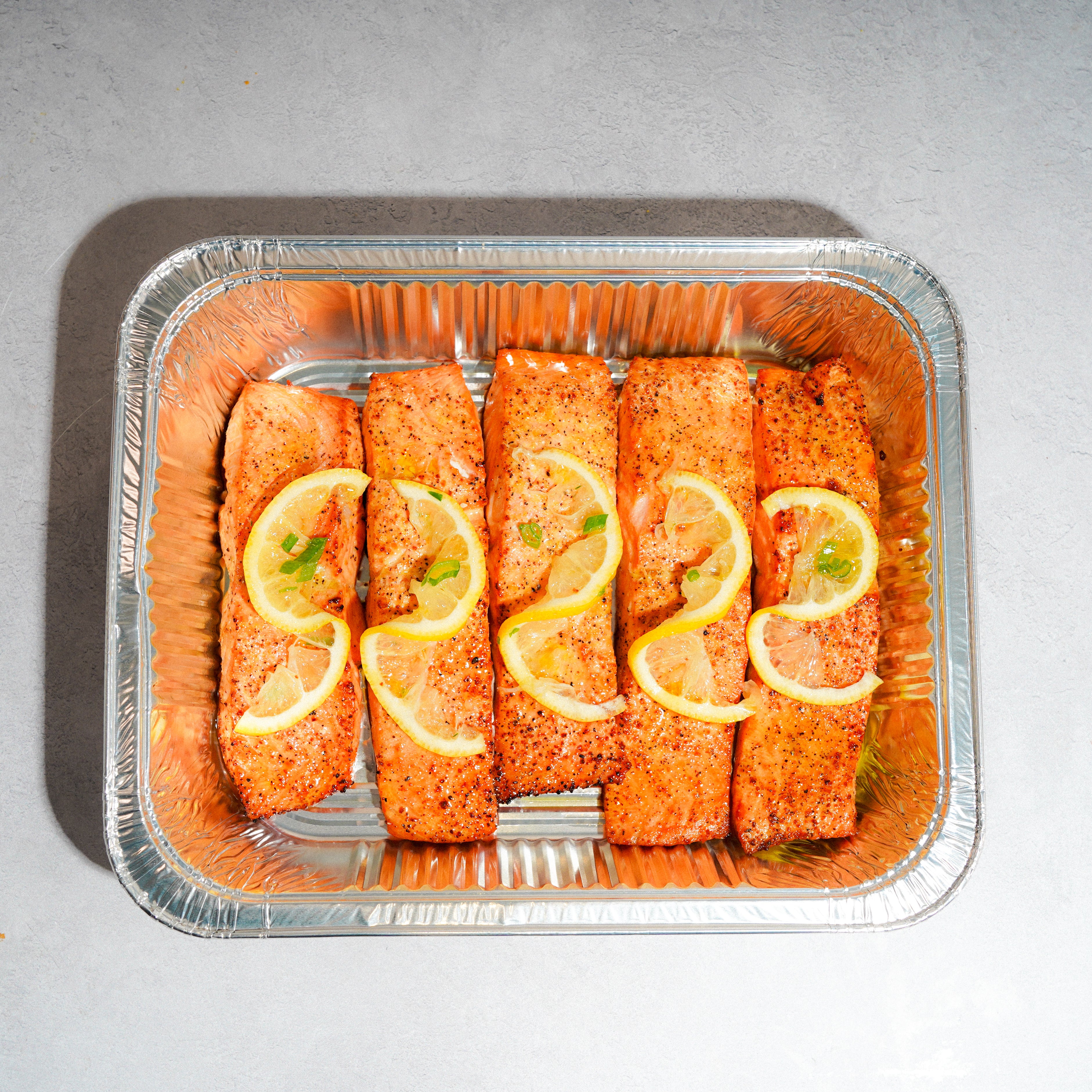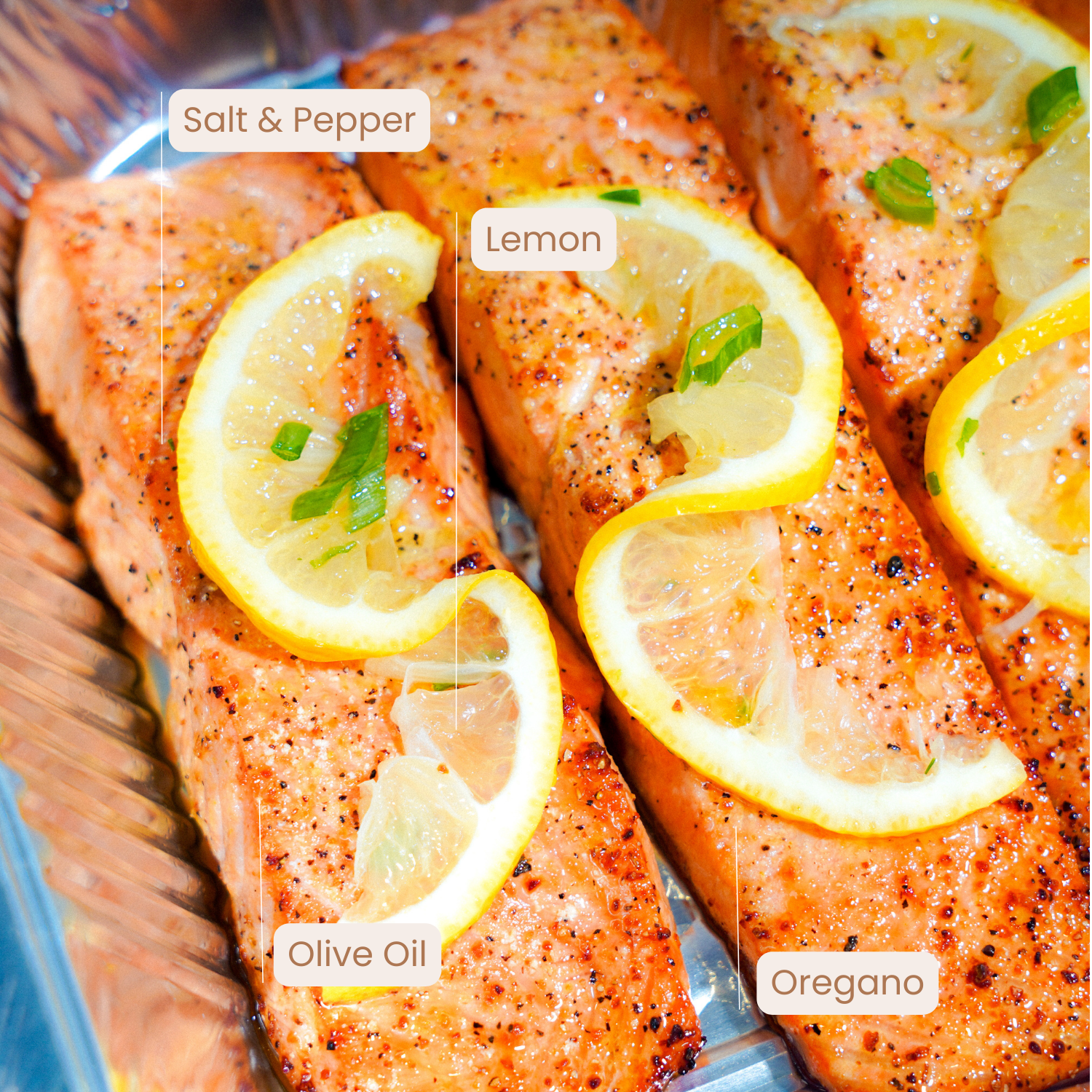 Sustainably sourced salmon, fresh lemon juice, cold-pressed olive oil, sea salt, cracked black pepper, oregano.