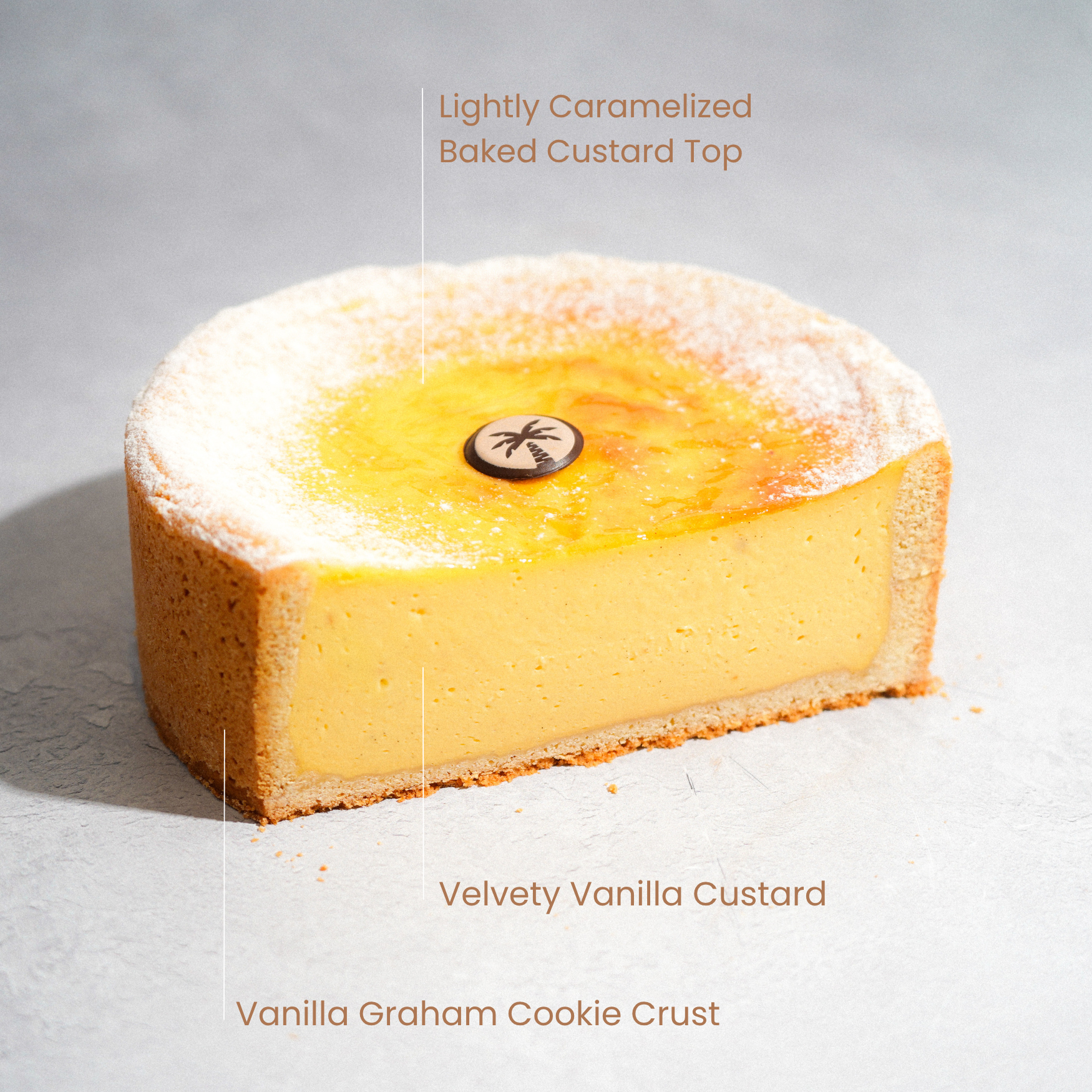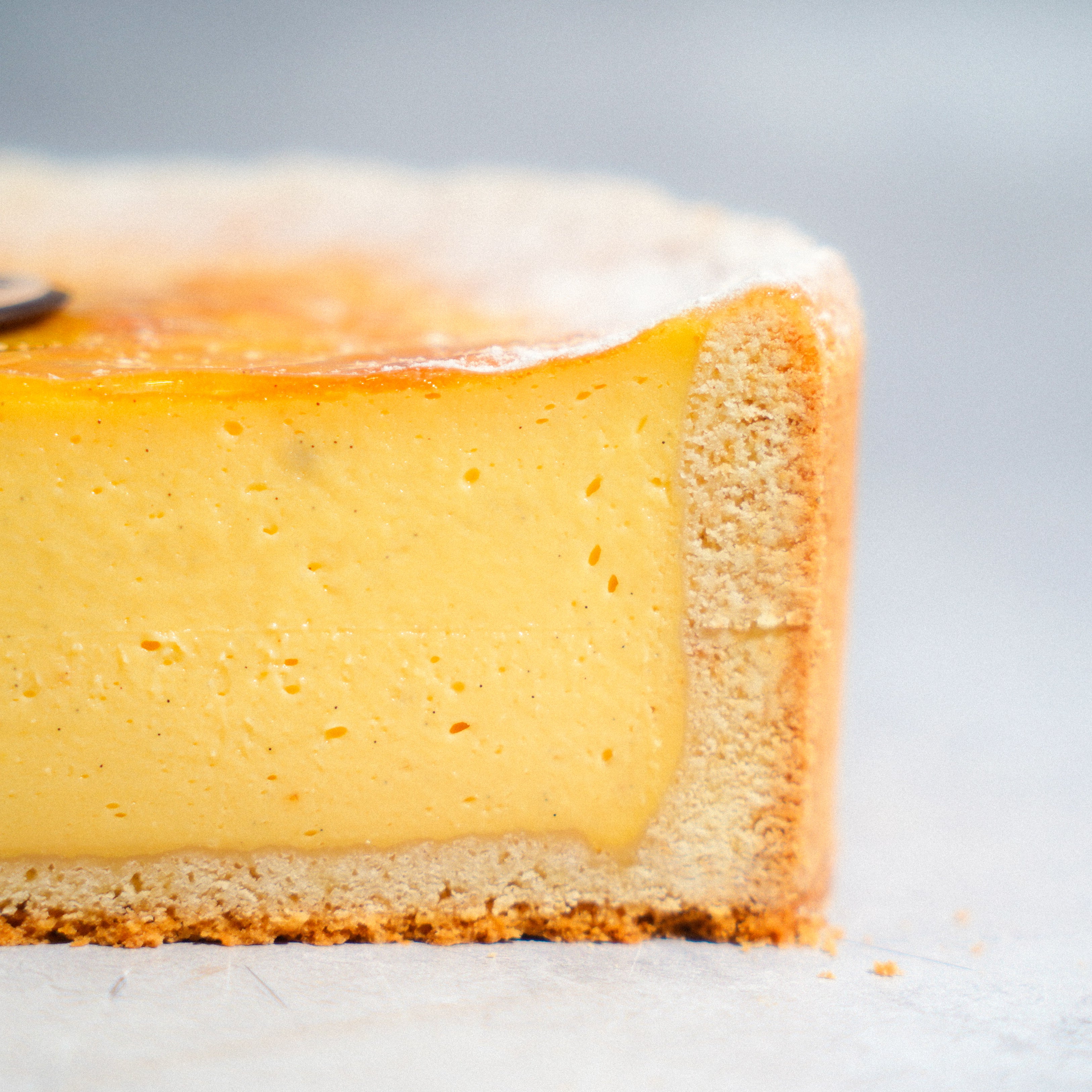 Our version of the classic French custard tart—timeless, elegant, and rooted in simplicity. Baked until gently set with a bronzed, caramelized top, it brings quiet luxury to any dessert table.